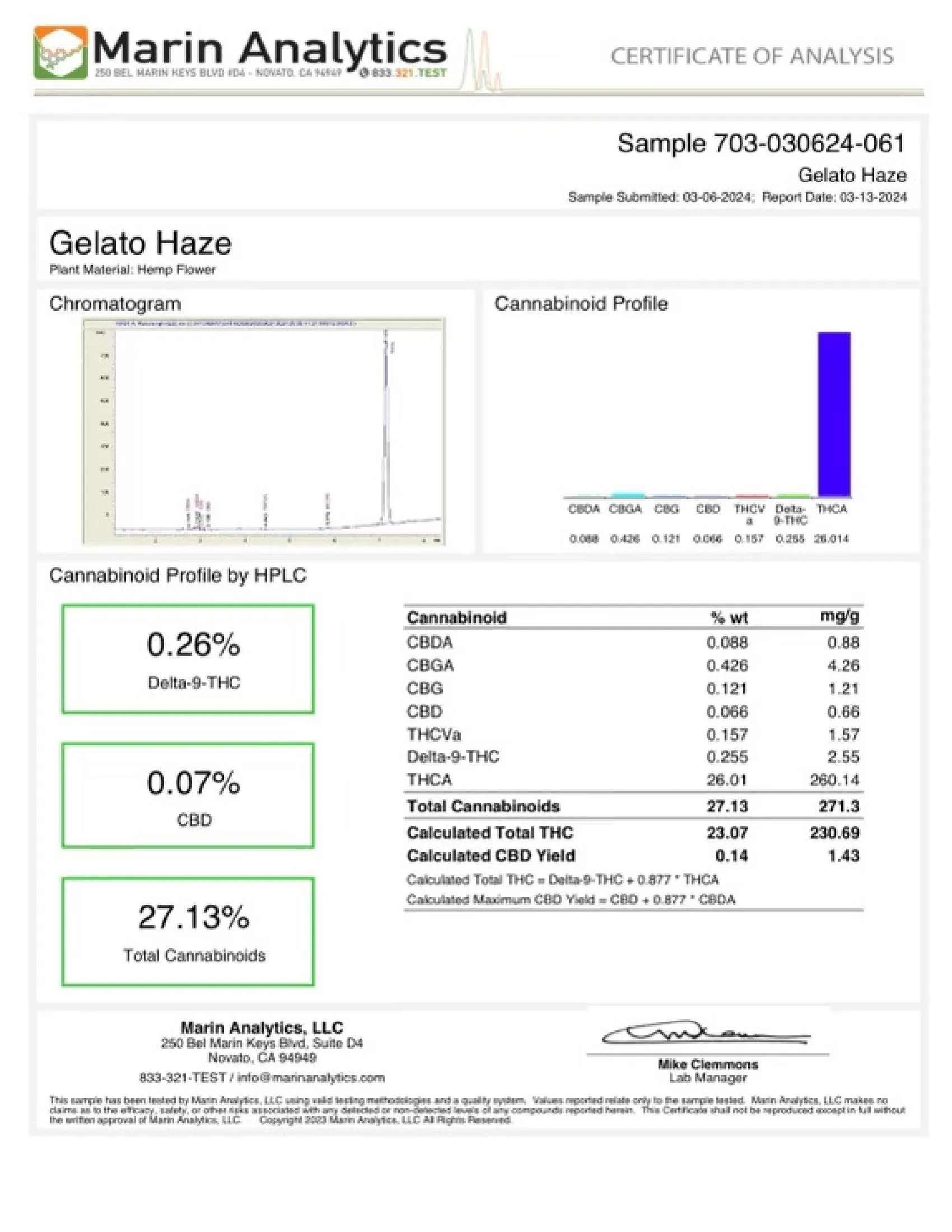 Hemp is cannabis with a Delta-9 THC concentration ≤ 0.3% by dry weight.