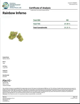 Every batch of Rainbow Inferno comes from trusted partner farms throughout the United States and is crafted to our Super Premium standard. It’s third-party lab tested for potency and purity, hemp-derived, and fully compliant with the 2018 Farm Bill. THCA converts to THC when heated—so you get that familiar, full-on experience while staying within federal guidelines.