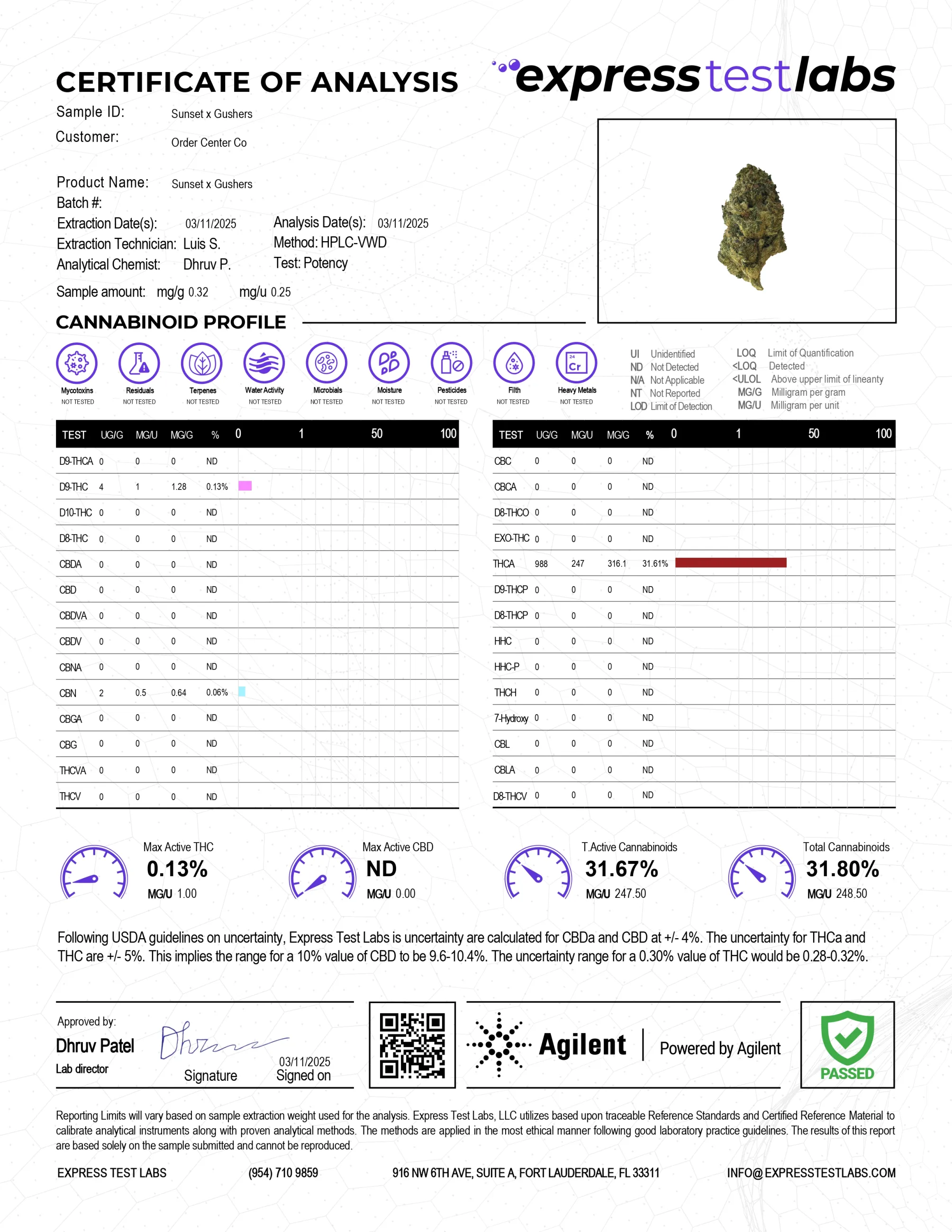 Rest assured, your safety is our utmost priority. Every batch of our products, including Sunset x Gushers THCA hemp flower, undergoes rigorous third-party laboratory testing to ensure we consistently deliver the superior quality our customers expect.